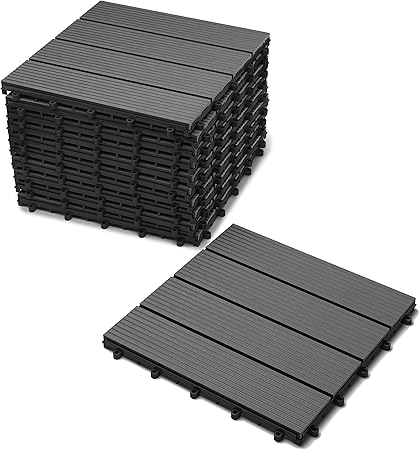 Laneetal 11 Pcs Wpc Decking Tiles Anthracite Terrace Decking Wood